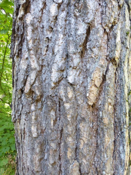 幼树树皮暗灰色,老则灰黑色,粗厚,裂成块片脱落。