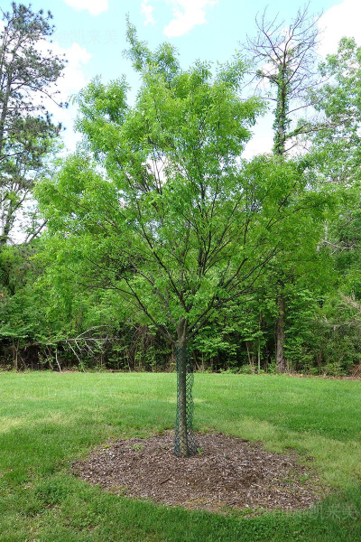落叶乔木,高达25米,胸径可达1米;树冠广圆形,当年生枝密被短柔毛,深褐色;冬芽卵圆形,红褐色,无毛。