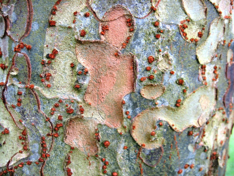 树皮灰色或灰褐,裂成不规则鳞状薄片剥落,露出红褐色内皮,近平滑,微凹凸不平。