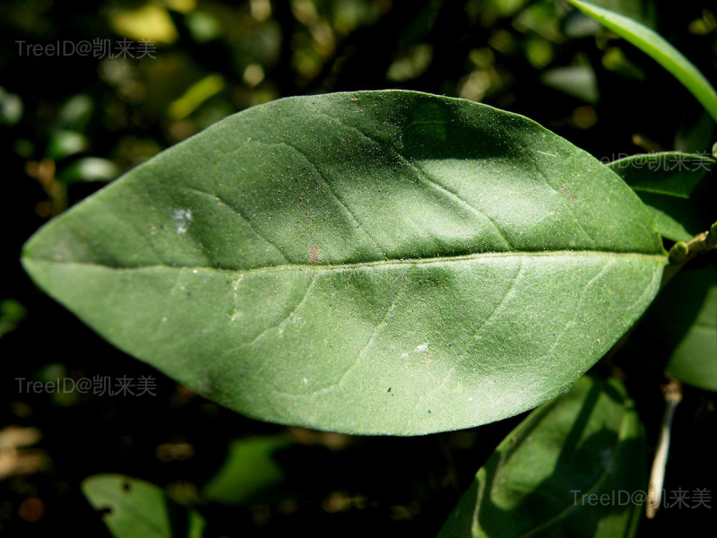 叶片纸质,披针形、卵状披针形或狭卵形,长3-12厘米,宽0.8-2.6厘米,先端锐尖至渐尖,基部楔形,全缘,两面无毛,中脉在上面稍凹入或平,下面凸起,侧脉2-8对,斜向上延伸,两面稍凸起,有时在上面凹入;叶柄长1-5毫米,上面具沟,光滑无毛。