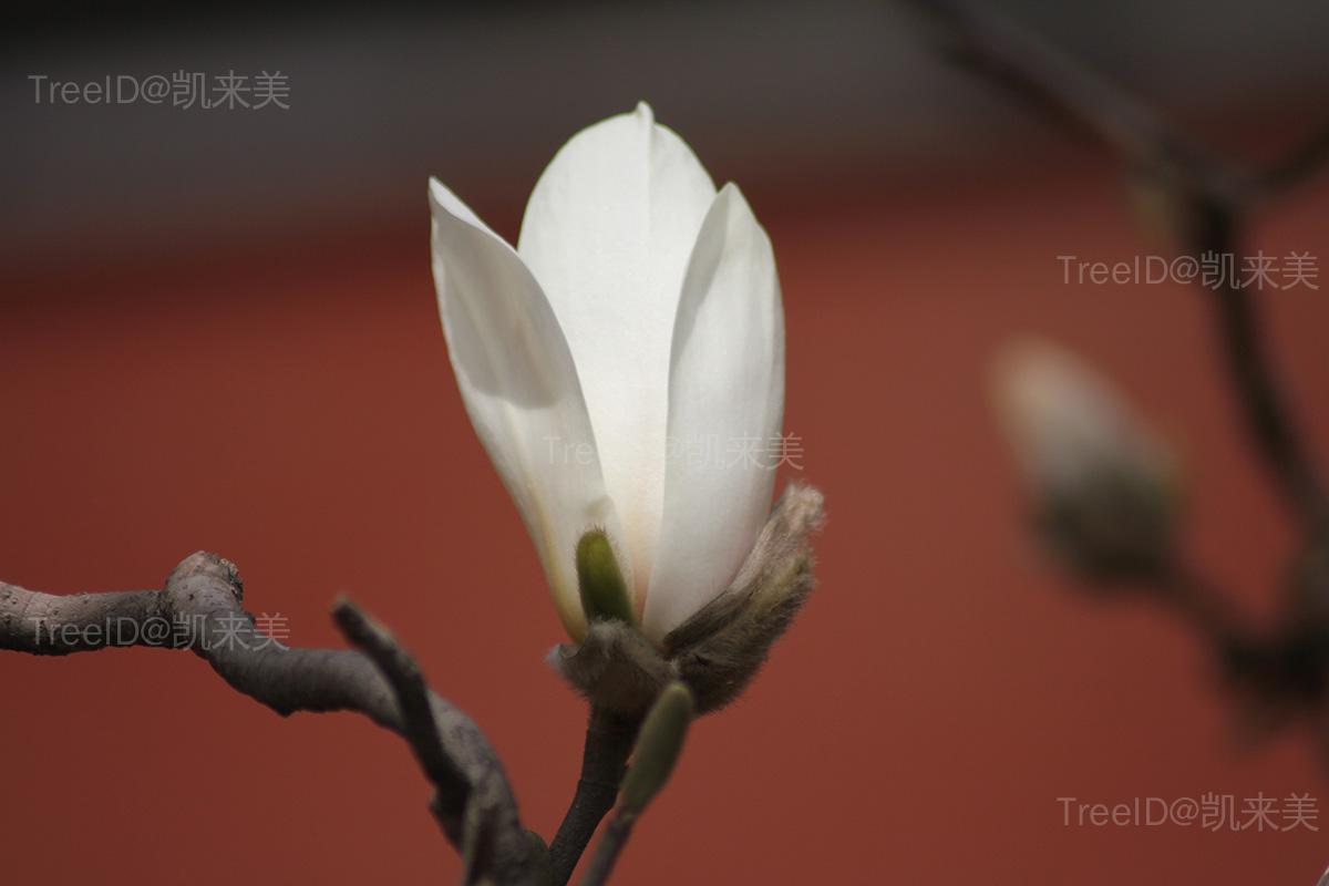 冬芽密生灰绿色或灰绿黄色长绒毛;小枝淡灰褐色。 叶互生,倒卵形至倒卵状矩圆形,顶端短突尖,全缘,上面有光泽,下面生柔毛。 花先叶开放,单生枝顶,白色,有芳香,呈钟状,大形;花被片矩圆状倒卵形,每3片排成1轮。 聚合果圆筒形,淡褐色;果梗有毛;蓇葖顶端圆形。