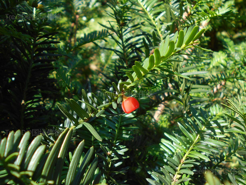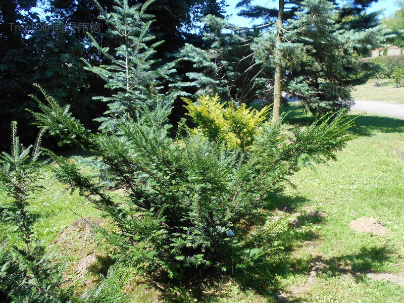 东北红豆杉(紫杉)培育出来的一个具有很高观赏价值的品种。常绿灌木。