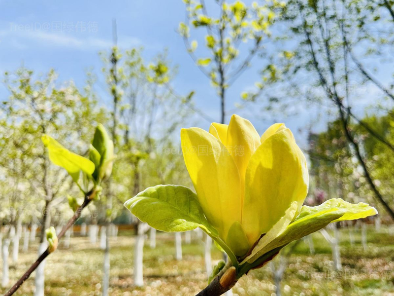 黄鸟玉兰是日照瑞丰进口苗木引进的欧洲玉兰新品种,较普通黄玉兰、紫玉兰树型更高大,观赏价值更高,适合于庭院、小区、校园、公园以及作为行道树栽植观赏。该品种春季花量巨大,黄色的花朵自始至终都是金黄色,花瓣掉落在地上都是金黄色的,而国内的黄花玉兰花苞为黄色,开花后花瓣变为白色,极大的降低了观赏价值,黄鸟玉兰夏秋两季也陆续开黄花,是观赏性极高的黄花玉兰品种。