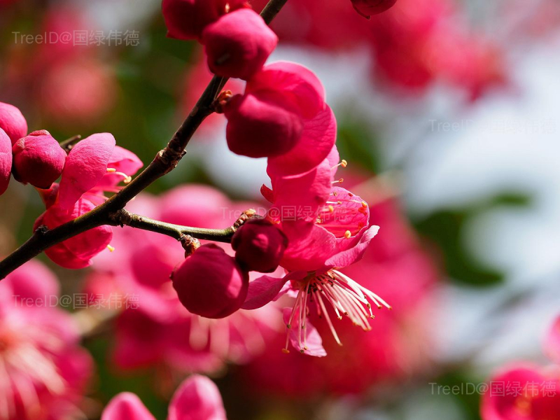 2. 温度,红梅对温度适应范围很广,但最适宜的是25℃左右,而且温度的高低还影响花期的时间,开花前温度低,会延迟花的开放时间,开花期间如果温度低一点,反而会加长花期。
